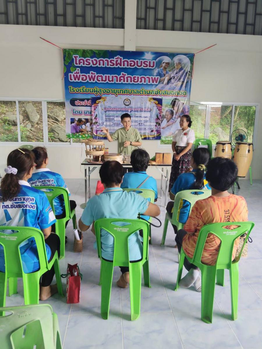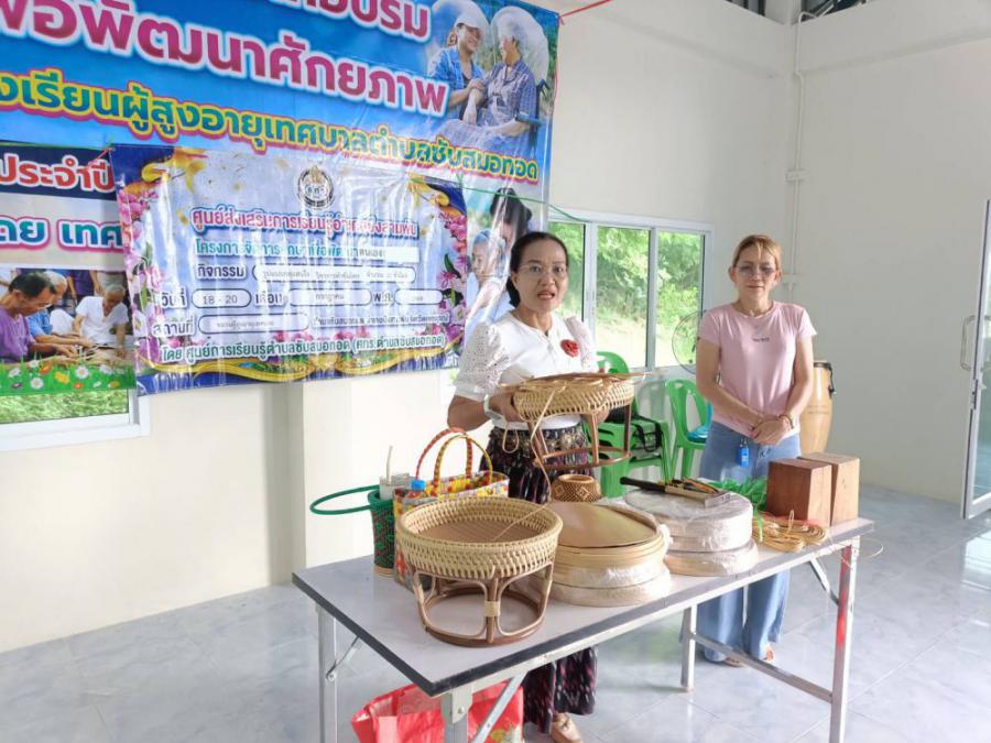 ครงการศูนย์ฝึกอาชีพชุมชน รูปแบบกลุ่มสนใจ (ไม่เกิน 30 ชั่วโมง) หลักสูตรการทำขันโตก จำนวน 15 ชั่วโมง ณ ชมรมผู้สูงอายุเทลบาลซับสมอทอด จังหวัดเพชรบูรณ์