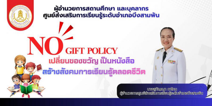 นางสุกัญญา กาโกน ผู้อำนวยการศูนย์ส่งเสริมการเรียนรู้ระดับอำเภอบึงสามพัน ขอร่วมเป็นส่วนหนึ่งในการส่งเสริมวัฒนธรรมองค์กรโปร่งใส งดให้ ? งดรับ ของขวัญ ของกำนัลทุกชนิดในทุกโอกาส เพื่อสร้างมาตรฐานทางจริยธรรม และส่งเสริมค่านิยมสุจริต โปร่งใส ตรวจสอบได้ ขอขอบคุณทุกท่านที่ร่วมกันปฏิบัติตาม นโยบาย No Gift Policy เพื่อสังคมไทยที่โปร่งใสและยั่งยืน S:0