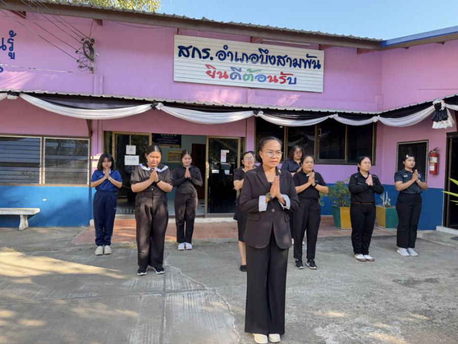 เข้าแถวเคารพธงชาติ สวดมนต์ ร่วมยืนสงบนิ่งถวายความอาลัย น้อมรำลึกในพระมหากรุณาธิคุณ สมเด็จพระนางเจ้าสิริกิติ์ พระบรมราชินีนาถ พระบรมราชชนนีพันปีหลวง? และเตรียมความพร้อมในการทำงานวันแรกของปี