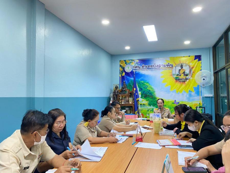 วันที่ 24 มีนาคม 2568 เวลา 09.00 น. นางสุกัญญา กาโกน ผู้อำนวยการศูนย์ส่งเสริมการเรียนรู้ระดับอำเภอบึงสามพัน พร้อมด้วย ข้าราชการ คณะครู บุคลากรทางการศึกษา จัดประชุมประจำเดือน เพื่อจัดทำแนวทางการขับเคลื่อนงานดำเนินงานการเรียนรู้ตลอดชีวิต ประจำปีงบประมาณ 2568 และสรุปผลการดำเนินงาน ไตรมาส 1-2 ณ ศูนย์ส่งเสริมการเรียนรู้ระดับอำเภอบึงสามพัน จังหวัดเพชรบูรณ์ S:0